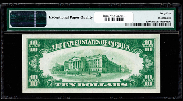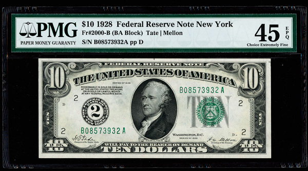 Fr. 2000-B 1928 $10 Federal Reserve Note New York PMG 45 Choice Extremely Fine EPQ, PMG graded Choice Extremely Fine 45. (Image) (Image2)