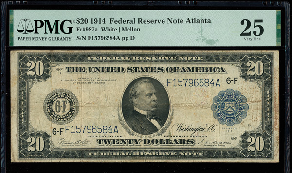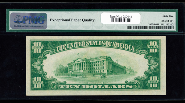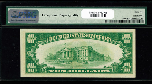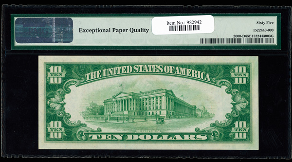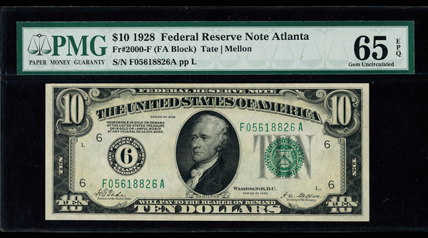 Fr. 2000-F 1928 $10 Federal Reserve Note Atlanta PMG 65 Gem Uncirculated EPQ (Fr-2000-F), PMG graded Gem Uncirculated 65. (Image) (Image2)