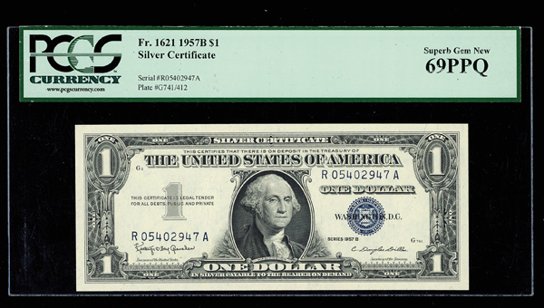 Fr. 1621 1957-B $1 Silver Certificate PCGS 69 Superb Gem New PPQ (Fr-1621), PCGS graded Superb Gem Uncirculated