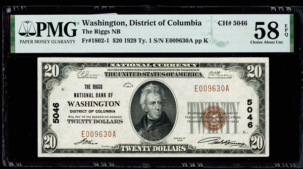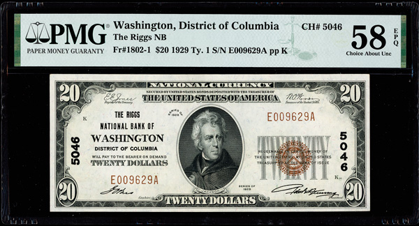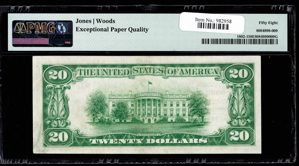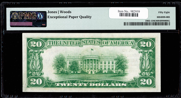Fr. 1802-I 1929 $20 Federal Reserve Note PMG 58 Choice About Uncirculated EPQ (Fr-1802-I), PMG graded Choice About