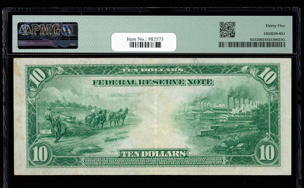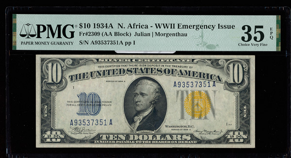 Fr. 2309 1934A $10 North Africa Silver Certificate PMG 35 Choice Very Fine EPQ (Fr-2309), PMG graded Choice Very Fine 35. (Image) (Image2)