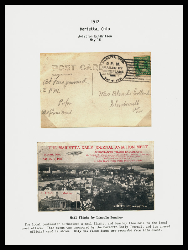 1912 (May 15-16) Fair Grounds Aviation Meet, Marietta, Ohio (AAMC 24), only six of the 1,500 pieces carried have been found;