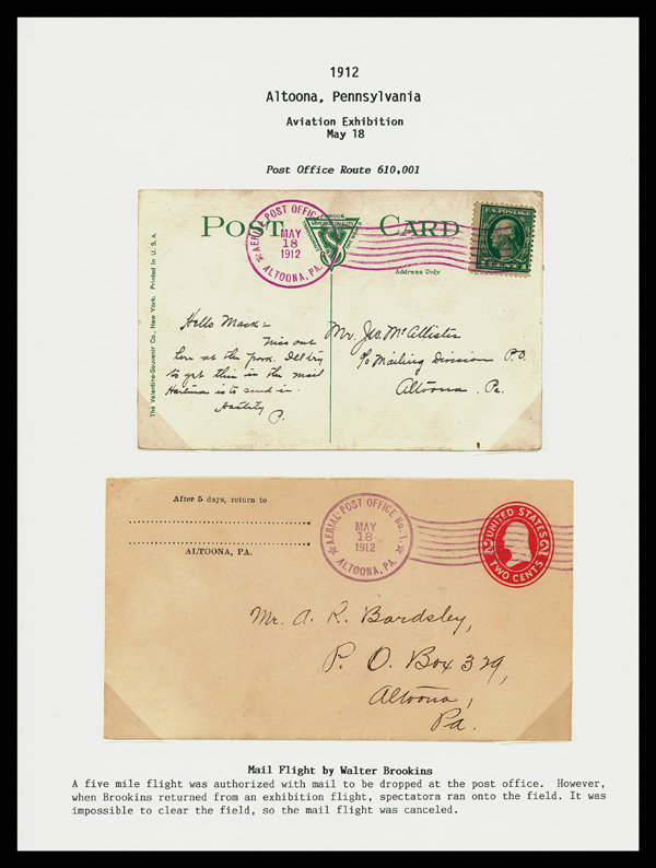 1912 (May 18) Driving Park Aviation Meet, Altoona, Penn. (AAMC 25), Walter Bookins had planned to carry 1,200 pieces of mail