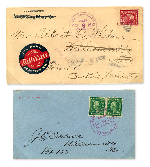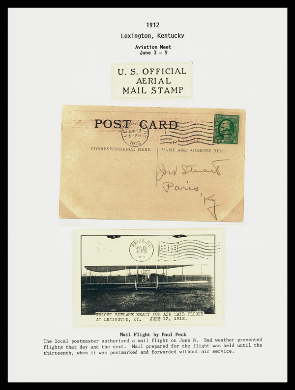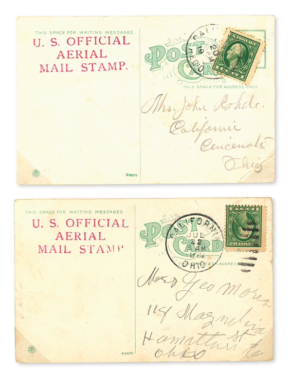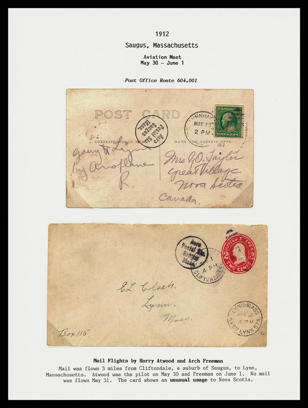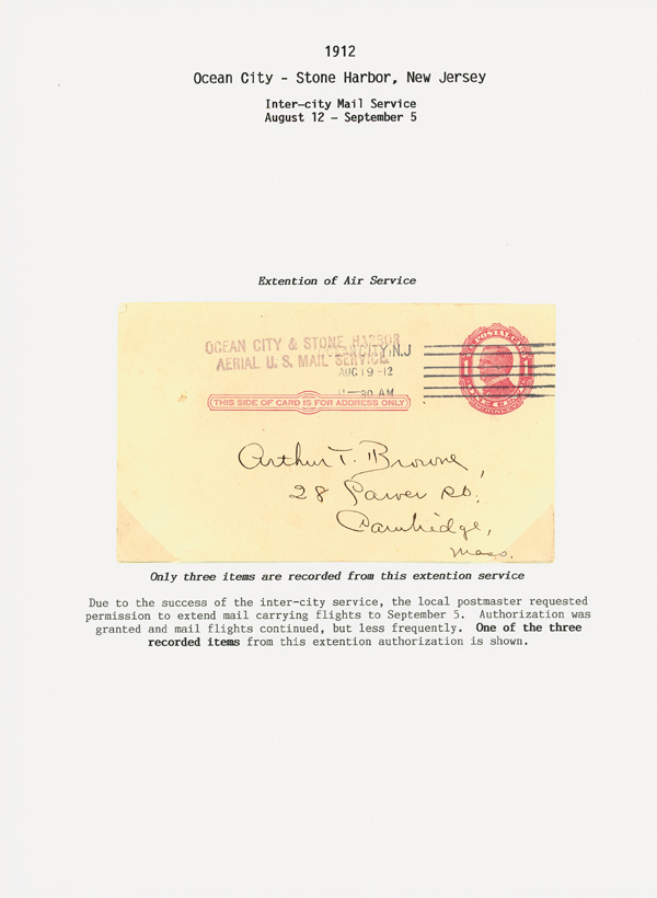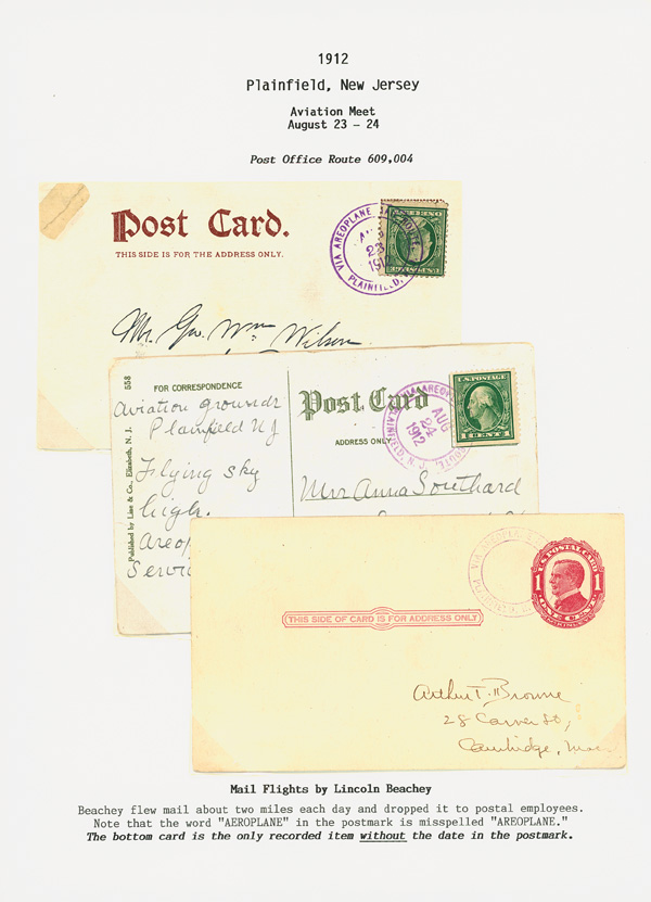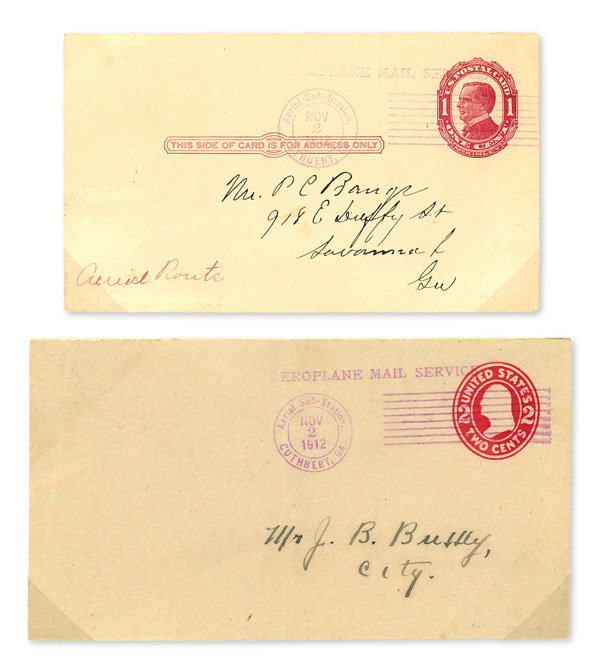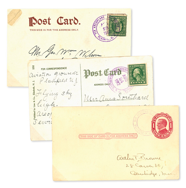 covers and postcards to postal officials in Columbia; attractive postal entire with bold Aeroplane Station postmark, Fine to Very Fine. AAMC $500. (Image) (Image2)