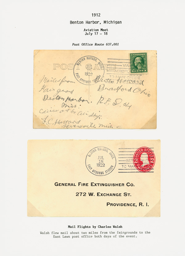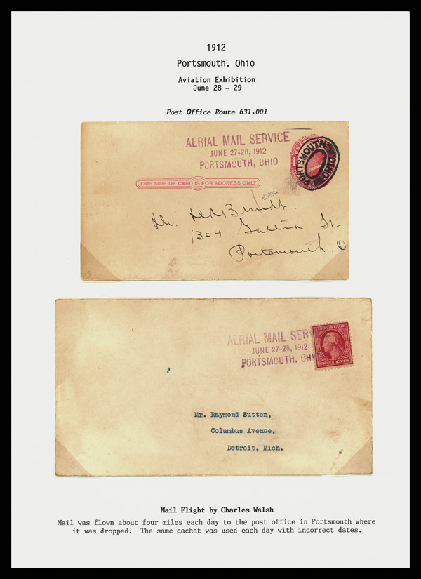 1912 (June 27-28) Millbrook Driving Park Aviation Meet, Portsmouth, Ohio (AAMC 35), for two days Charles Walsh flew a pouch