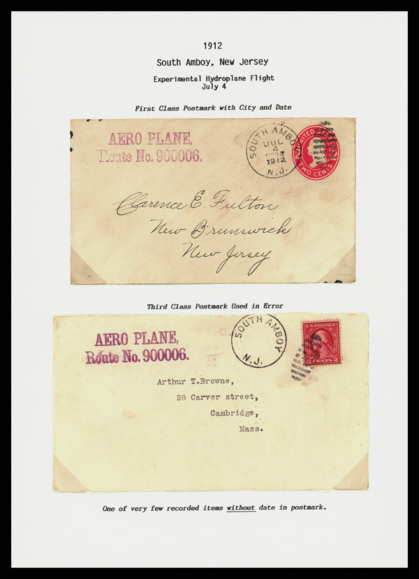 the other the Apr 7 flight) carried by Farnum Fish in a biplane and then carried by Lt. John Towers (USN) in a hydroplane; while as many of 2,000 items were carried, very few remain; catalog $1,000, Very Fine. AAMC $500. (Image)