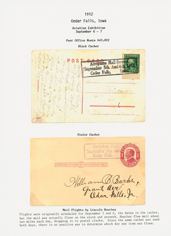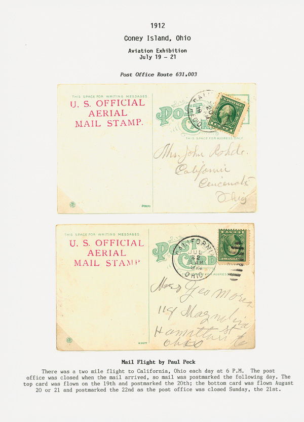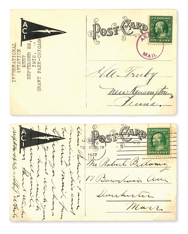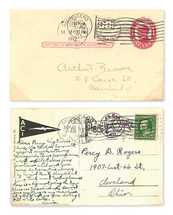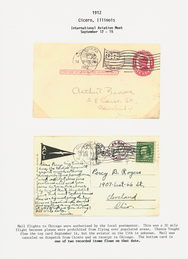 during the Cicero Flying Field International Meet; examples from the Sept 14 and 15 flights are on an exhibit page; catalog $1,000, Fine to Very Fine, only two recorded for Sep 15th date. AAMC $500. (Image) (Image2)