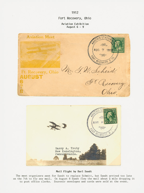 1912 (Aug. 6-8) Harvest Festival Aviation Meet, Fort Recovery, Ohio (AAMC 47), five cards and envelopes chronicle the