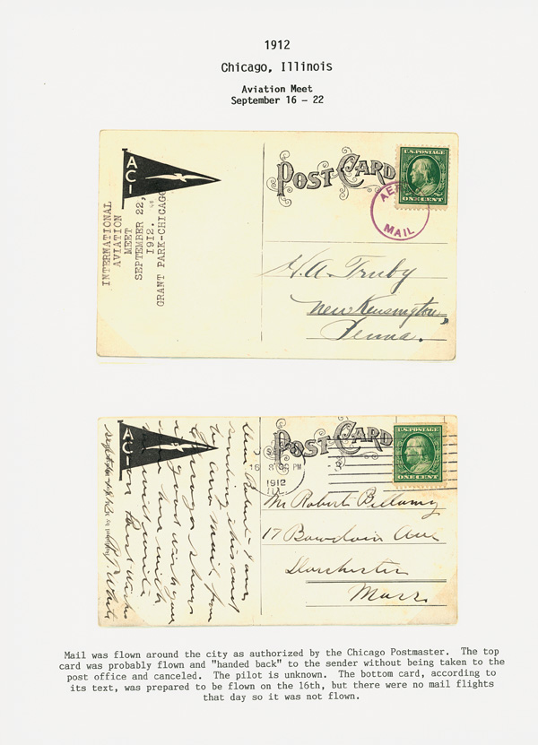 1912 (Sept. 16-22) Grant Park Aviation Meet, Chicago, Ill. (AAMC 55c), three different pilots participated in mail drops