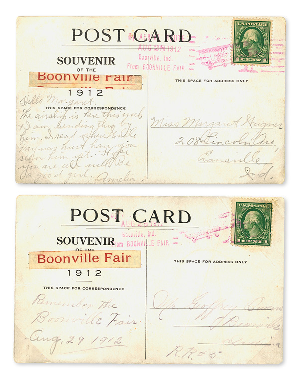1912 (Aug. 28-31) Fair Grounds Aviation Meet, Boonville, Ind. (AAMC 51), leftover Rockport meet postcards received a