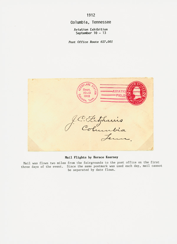 1912 (Sept. 10-12) Fair Grounds Aviation Meet, Columbia, Tenn. (AAMC 54), for three days aviator Horace Kearney dropped