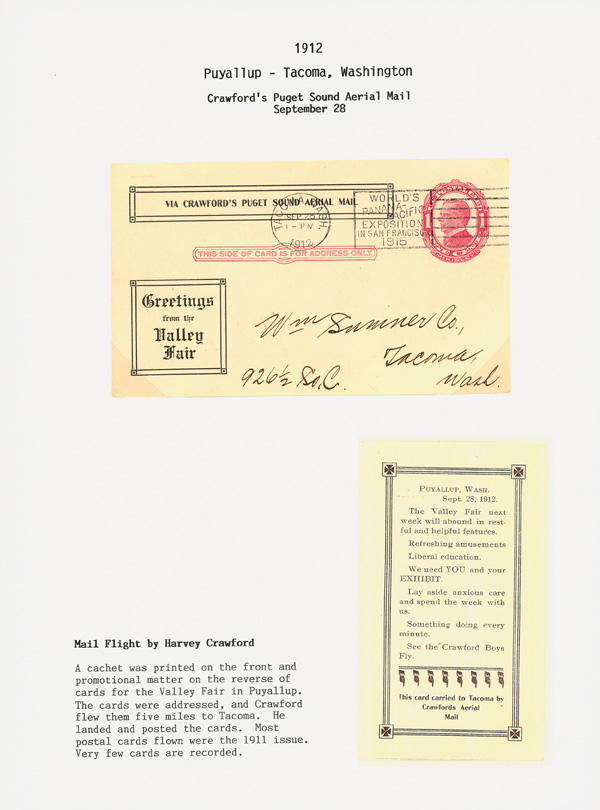 1912 (Sept. 28) Crawford's Puget Sound Aerial Mail, Puyallup to Tacoma, Wash. (AAMC 60), Harvey Crawford prepared printed