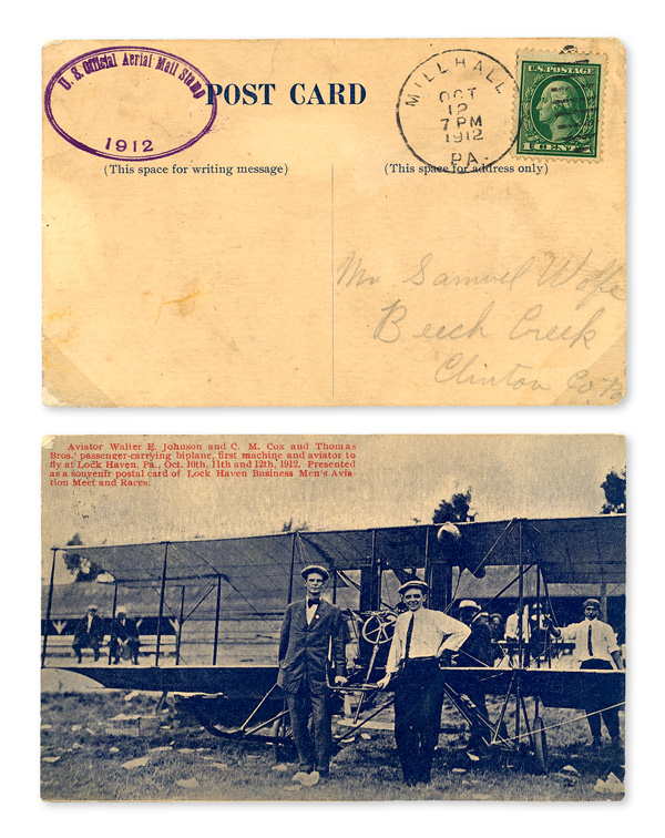 Flying Exhibition from Lock Haven to Mill Hall from a temporary post office erected at the race track; catalog $800, Fine to Very Fine. AAMC $400. (Image) (Image2)