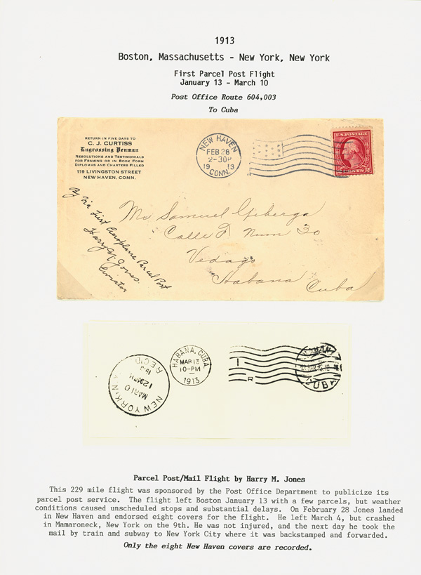 1913 (Jan. 13) First Aerial Parcel Post Service, Boston to New York (AAMC 67), First Class and Parcel Post mail originated