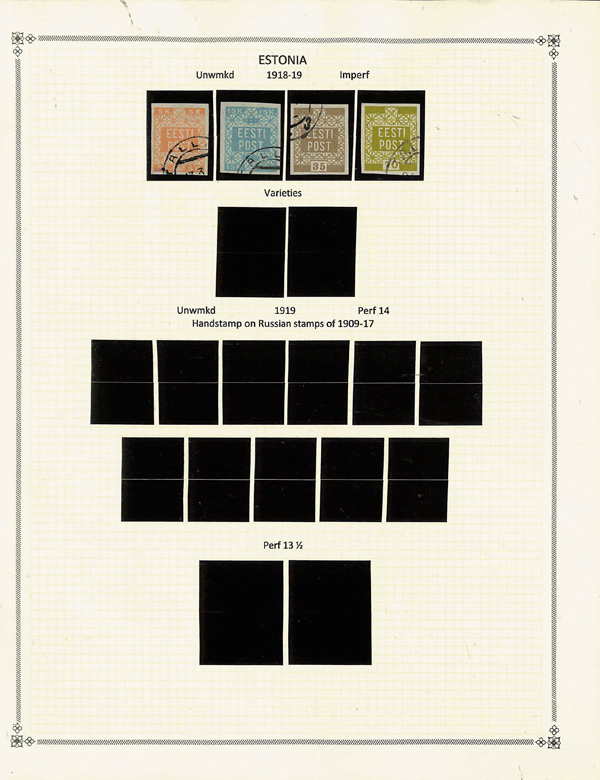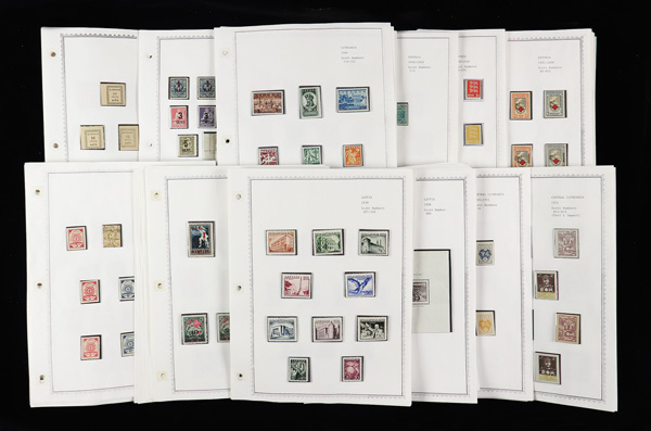 3693   imageBaltic States, Highly Complete Mint and Used Collection, 1918-41, mounted on quadrille pages, offered as received, a grand three-country collection of outstanding beauty; built over decades by a knowledgeable philatelist with an eye for quality, all items are annotated as to year of issue, watermark and paper/perforation with varieties shown immediately following the major numbers; imperfs are all four full-margined, perforated stamps generally with superior centering; note perforated and imperforate issues throughout, souvenir sheets, Occupations, solid Back-of-the-Book for all, Lithuania Kaunus Printings complete used, 1920 Trial Printings on card, and much, much more; a handsome holding, worth review, Very Fine with much better, fully imaged online, with 1995 Hoffmann certificate for Latvia Michel #220-224 (Scott #C9-C13). Shipping charges apply - weight 1.8 lbs. (PDF for this Lot) (PDF2 for this Lot) (Image)