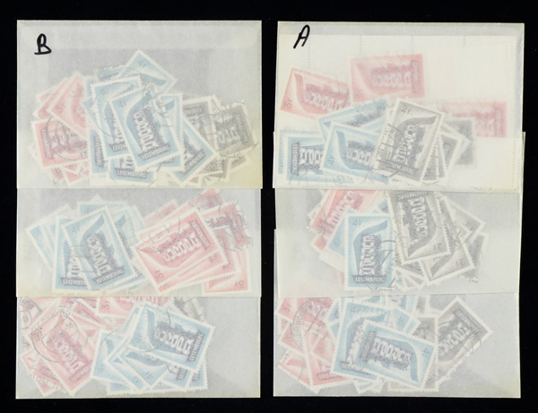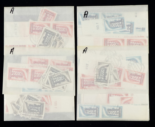 3691   imageEurope (Western), Massive Holding of Used Dealer Stock of the Europa Issues, 1956-2001, Part of the vast inventory from one of the top retailers in the Netherlands, four long boxes packed with glassines, most labeled with Michel catalogue number and organized by year. Mostly CTO'd with much of it in blocks as well as booklets and almost all the better ones are here in eye-opening quantities. There must be well over 100 sets of the 1956 issue of Luxembourg alone! Grouped into sets for immediate resale, this holding is a huge timesaver and an incredible bargain if you can corral this within the estimate, Fine to Very Fine. Shipping charges apply - weight 16.4 lbs. (Image) (Image2) (Image3) (Image4) (All Images)