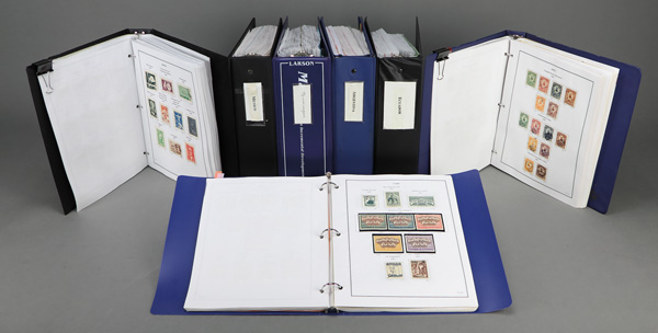 3703   imageScandinavia Collection, Five Scott albums (some cross duplication across albums) plus some additional 2005/08 Norway in a binder, plenty of 1950s/90s mint (many NH) sets with some better earlier as (mint unless otherwise noted) Denmarkto 2004 with 3-9 used, 11-20 used, 25-52 used, 65-78 used, 89-135 used, 145-54, 164-75 used (2), 210-19 mint and used, C1-5, Finland to 1993 with well-filled mixed mint and used 1917/93, B8-30, many 1930s/1951 semi-postals present both mint and used, Iceland to 1991 with mixed mint and used through 1980s, C15-20, Norway to 2008 with 3-5 used, 11-15 used, useful assortment of used Numerals, mixed mint and used 1940s/2005, array of mostly used officials, Sweden mostly used to 1989 in a moderately filled album, some classics usual mixed condition but generally fresh and F-VF. Shipping charges apply - weight 40 lbs. (Video for this lot) (Video2 for this lot) (Video3 for this lot) (Image)
