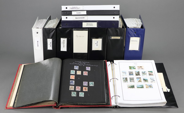 3710   imageEurope (Eastern), Mostly Used Collections of Czechoslovakia, Poland, Romania & Others, 1858-2009, A dozen binders with stamps on internet pages covering the countries of Bulgaria (1879-2002 in 2 volumes), Czechoslovakia (1918-92), Greece (1861-2009), Poland (1918-2000 in 2 volumes), Romania (1858-1991 in 2 volumes), and Yugoslavia (1918-89) with separate smaller binders with classic Croatia, Montenegro, and Serbia. Overall mostly used with such better sets & singles as Czechoslovakia used #45a, mint 434a, 556, 1080 (sheetlet), C1-3, Greece mint 8 (signed), Poland mint 53, 56 (signed), 412a, B29, B31, P1-5, 1K1-11, 1K11A-12, 1K24, used 1K13, Romania mint 396-99, B1-4, used C71, and many others. Owner CV in excess of $20,000, overall Fine to Very Fine, additional scans & video online. Shipping charges apply - weight 49 lbs. (PDF for this Lot) (Video for this lot) (Video2 for this lot) (Video3 for this lot) (Video4 for this lot) (Video5 for this lot) (Video6 for this lot) (Video7 for this lot) (Image)