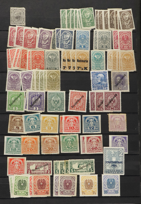 3684   imageEurope, Impressive Assortment of Primarily Mint Austria, Germany, Switzerland, and More, 1870-1990, an assortment contained in four Lighthouse stockbooks, with a vast majority being Germany; an overwhelming majority of all albums mint, with only a handful of earlier stamps used; Germany includes a large variety of material dating from Imperial Germany, the Third Reich, Occupied Belgium, Postwar Occupation Zones, Rheinland, Bundespost, and more; plenty of each duplication; some plate blocks and souvenir sheets included; Switzerland includes a notable early mint assortment beginning in 1890 with #69, with multiple watermark variants present and prime for inspection; includes a notable amount of mint material from the 1960's through 1980's, with some plate blocks included, Austria includes a powerful assortment of early Austria-Hungary, with some "Porto" material later on; a small amount of Greece mint material, as well as some Iceland as well; a very nice accumulation with great range and depth; worthy of in-person inspection. Shipping charges apply - weight 15.6 lbs. (Video for this lot) (Image) (Image2) (Image3) (Image4) (Image5) (All Images)
