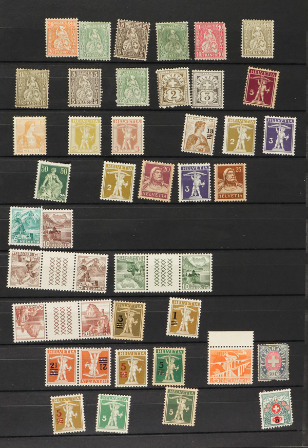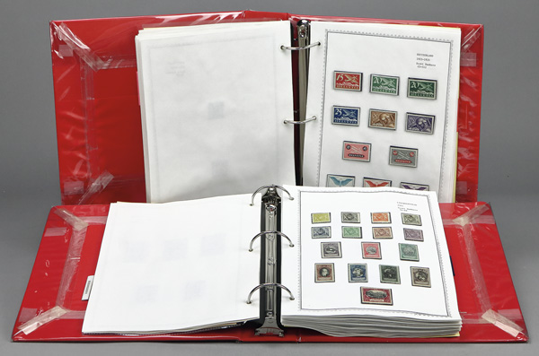 3706   imageSwitzerland & Liechtenstein, Mint & Used Holding with Sheets, 1851-2018, Five stockbooks of Switzerland with mostly modern material to 2018, but many better classics including an unused #10 with certificate. Other highlights include mint #183, 304-05, 352a, B119, B132, B143-44, B178, and used 242 (on cover with Expo cancel), 293-303, B2-3, B4-6, B7-9, B21-24, B131, B178. For Liechtenstein, also mostly from the modern era including mint collections in two volumes of Lindner (1967-90 & 1972-92) and a Lighthouse (1962-79), along with about 200 complete sheets in four separate binders. Better include mint 171, 238, 259-60, 260a, 264, 287-88, 356, and used 259a, B14, etc, overall Fine to Very Fine, additional images online. Shipping charges apply - weight 65 lbs. (PDF for this Lot) (Image)