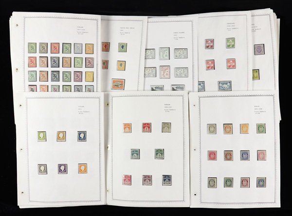 3699   imageScandinavia, "Due North" Highly Complete All-Mint Collection of All Countries, 1893-1982, Clean collection on homemade pages for all five countries and all stamps in mounts. Highly complete for the time ranges with such better as Denmark (1905-50) with #57-64, 65-69, 72-78, 79-81, 82, 85-96, 97-131, 145-54, 160, 164-75, 181-91, 210-19, 232-38, B1-2, C1-5, J1-7, O16-24, Q1-11, Q12-14, Finland (1917-54) with 83-110, 178, C1, Q1-5, Iceland (1911-49) with 86-91, 108-28, 130-38, 144-48, 152-66, 170-75, 193-94, 203-08B, 213-16, 217-28, 232-35, 246-52, B5, C1-2, C4-8, O40-49, O68, Norway (1893-1949) with 47-58, 59-61, 74-95, 104-10, 115-28, 207-19 (5ö with certificate), 246, 275-78, B1-3, B24, O9-21, Sweden (1903-49) with 66, 167-88, 194-96, 197-212, 229, 248-62, O28-40. In addition, the Danish West Indies (1905-15) with 31-39, the Faroe Islands (1975-82) and Greenland (1938-60) with 10-18, 28-38, generally Fine to Very Fine, additional images online. Shipping charges apply - weight 4.6 lbs. (PDF for this Lot) (Image)