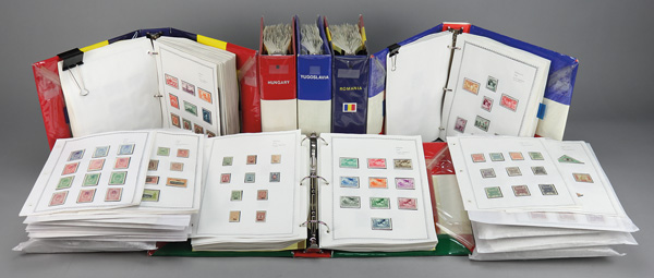 3708   imageEurope (Eastern), Extensive All-Mint Collections of Bulgaria, Hungary, Romania, Yugoslavia & Others, 1865-1950, Clean collection on homemade pages covering a large chunk of Eastern Europe with the majority of countries to 1950 and all stamps in mounts. Better sets & singles include Albania #21-26, 54-61, 91-97, 218-26, 241-48, 289, 310-23, C15-21, C36-42, C46, J1-9, Armenia 130-44, 278-94 (perf & imperf), Bulgaria 23-27, 28-37, 57-69, 74-76, 89-100, 237-50, 267-72, 273-78, C12-14, Croatia B11-12, B31 (perf & imperf), Hungary 67-83, 462-65, 486, 528, B1-17, B18-34, B94, B97, B108-09, C26-34, CB1D, CB2, Karelia 1-15 (signed), North Ingermanland 8-14, Romania 22-27, 29-32, 158-65, 166-72, 196-206, 230-39, 396-99, 405-14, 417-19, B1-12, B40, B148, B292-303, C7-12, Serbia 87-97, 132-38, J1-5, 2N1-15, 2NB5-6, 2NB27-28, 2NC1-10, Tannu Tuva 15-28, 29-34, Yugoslavia 1L33, 1L43-45, 2L28-31, 22-26, 41-52, 53-62, 77-86, 87-101, C33, C33a, C43, J3-11, J12-20, 1K11, N55-70, and many others including Crete, Far Eastern Republic, Montenegro, Siberia, South Russia, etc, generally Very Fine, additional images online. Shipping charges apply - weight 25.4 lbs. (PDF for this Lot) (PDF2 for this Lot) (Image)