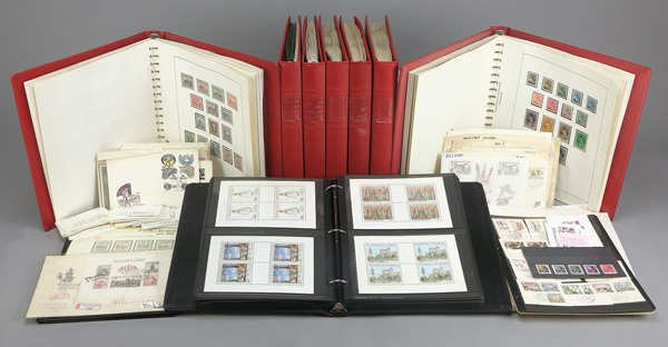 3683   imageCentral European Country Collections, Issues of Austria, Liechtenstein, and Switzerland in seven Scott albums plus an additional binder of miscellany (mostly Switzerland), lots of strength in 1950s/90s mint sets and singles with healthy percentage of these NH, some better earlier include (mint unless otherwise noted) Austria to 2009 with 110-27 used, 398-431 NH, B269-71 NH, Liechtenstein to 2006 with 4-9 NH, 116-29 (most NH), 227-35 NH and used, B7-10 used, B14 NH, C1-13, C7-8 NH (Raybaudi cert), C15-33, some of the 1930s/80s issues present both mint and used, Switzerland to 2012 with 7-8 used, 10 used, nice array of mostly used Seated/ Standing Helvetia and Numeral issues, 182, 226 NH, 227-36, 293-305 NH, 352a NH, B2-3, B15-40, B80 NH, B119 NH, B130-31 NH, B143, B144 NH, B178 used, C3-25, C27-42, O37-47 NH, etc., classic period some minor faults as usual but overall better than usually seen, generally fresh and F-VF. Shipping charges apply - weight 42 lbs. (Video for this lot) (Video2 for this lot) (Video3 for this lot) (Video4 for this lot) (Image) (Image2) (Image3) (All Images)