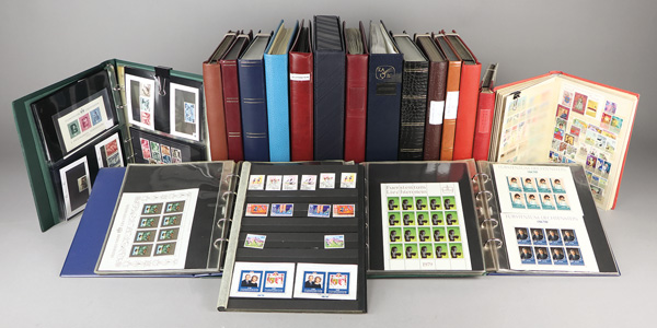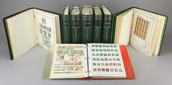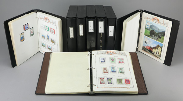 3715   imageMint Collection of Bohemia and Moravia, Czechoslovakia, Eastern Silesia, & Slovakia, 1918-86, in seven Lindner hingeless albums as well as an assortment of well-organized material (primarily minisheets) from a dealer's stock alongside a variety of covers; a complete and mint never hinged collection with the exception of the Czechoslovakia 1918-38 album, which is 95% complete and features some hinged material; desirable material includes a variety of souvenir sheets, including Scott #200a and 201a, which are particularly fine and attractive; a very attractive and well-organized collection that would prove a superb acquisition for any serious collector looking to explore this region; please see sample images and video online. Shipping charges apply - weight 46 lbs. (Video for this lot) (Video2 for this lot) (Video3 for this lot) (Video4 for this lot) (Video5 for this lot) (Video6 for this lot) (Image)
