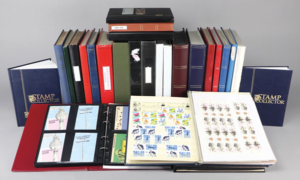 3711   imageEurope (Eastern), Mint & Used Holding with Stronger Baltics, DDR & Russia, 1864-2013, A total of 26 stockbooks of varying size, a few with multiple countries containing Bulgaria, Poland, Romania and Yugoslavia, but mostly single country volumes with eight for Russia into the 1980s, seven for the German Democratic Republic (two of which specifically for booklets), three for Estonia (with much modern mint to 2011), two for Lithuania, and one for Latvia, Czechoslovakia, and Croatia (also with much modern mint to 2013). Best evaluated on-site but a few video flips are viewable online, overall Fine to Very Fine. Shipping charges apply - weight 72 lbs. (Video for this lot) (Video2 for this lot) (Video3 for this lot) (Video4 for this lot) (Image)