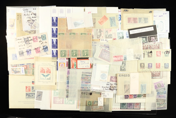 3687   imageWestern Europe Assortment, An assortment of mostly mint (many NH) sets, singles, S/S from various countries in glassines, sales pages, cards, etc., note useful Spain, Andorra, Switzerland, Monaco, Greece, Liechtenstein, Italy (numerous Raybaudi signed WW II CLN issues), etc., among the many premium (mint unless otherwise noted) Greece 545-48 NH ((2), 549-55 NH (4), 574-81 NH (5),582-85 NH, 587-600 NH (2), 604-17 NH (2), 639-48 NH (12), Italy 572-73 NH, B1-3 NH, C42-47 NH, C62-65 NH, C127-28 NH, Liechtenstein 238 NH, B4-6 NH (6), B7 -10 NH (11), B14 NH (16), C7-8 NH, Monaco 596 S/S perf NH and deluxe proof, C27-29 NH, San Marino 252-56 sheets of 10 NH (some folded), Spain 776-79+C127-30 NH, B74-105 NH, C97 NH, C97a NH (signed Kessler), some Civil War period issues, Switzerland 304 NH, B105 NH and used, Vatican City 41-46 NH, etc., generally fresh and F-VF, substantial retail value. Shipping charges apply - weight 3 lbs. (PDF for this Lot) (Image)