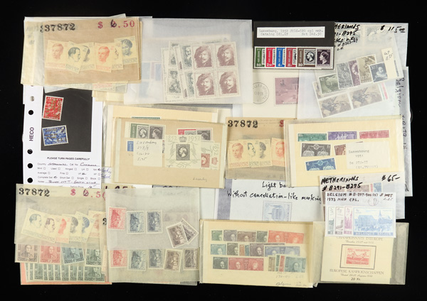 3697   imageBenelux Premium Assortment, Primarily NH sets and singles of the 1930s/50s with some minor duplication and handful of Belgium and Dutch colonies issues, including (mint unless otherwise noted) Belgium 172-84 NH, 407-17+B514 NH, B178 NH (7 without margin "cancel"), B179 NH (5 without margin "cancel"), B482a NH (5), B521-22 "UNESCO" overprint in tab NH, B544-46 NH, B605a, Luxembourg 272-77 NH (2), 278-79 NH, B65A-Q, C16-20 NH (2), Netherlands B50-53 NH (2), B291-95 NH (9), etc., generally fresh and F-VF. Shipping charges apply - weight 1 lbs. (PDF for this Lot) (Image)