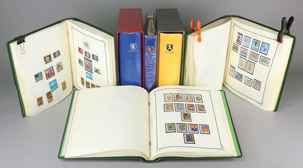 3695   imageBenelux Collection, Classic period to generally the early 2000s in six Scott or Minkus albums, mix of mint and used sets, singles, S/S, "back of the book" issues, etc. with some better as (mint unless otherwise noted) Belgium B99-105, B114-22 NH, Q438-59 NH, assorted 1950s/90s NH sets, Luxembourg in two albums with additional duplicates in a 3rd volume, 1-2 used, 1859/73 issues used but with some dubious cancels as often, majority of the 1912/79 issues present both mint and/or used (including charity issues), 217, 218-71 mint and used, 280-85 NH and used, most of the post-1960s mint issues NH, B1-49 mint and used, B55-59 mint and used, B73-85 mint and used, B98-103 NH, B104-36 mint and used (less B131 used), B151, O52-63 used, Netherlands 1-12 used, 23-32 used, 40-52 used, 226-43, B21-47 used, B50-133 used, B144a-145a, mostly complete mint or used 1944/88 including some booklets and panes, also includes useful sections of mostly mint colonies, etc., usual mixed condition in early issues but generally F-VF. Shipping charges apply - weight 38 lbs. (Video for this lot) (Video2 for this lot) (Image) (Image2) (All Images)