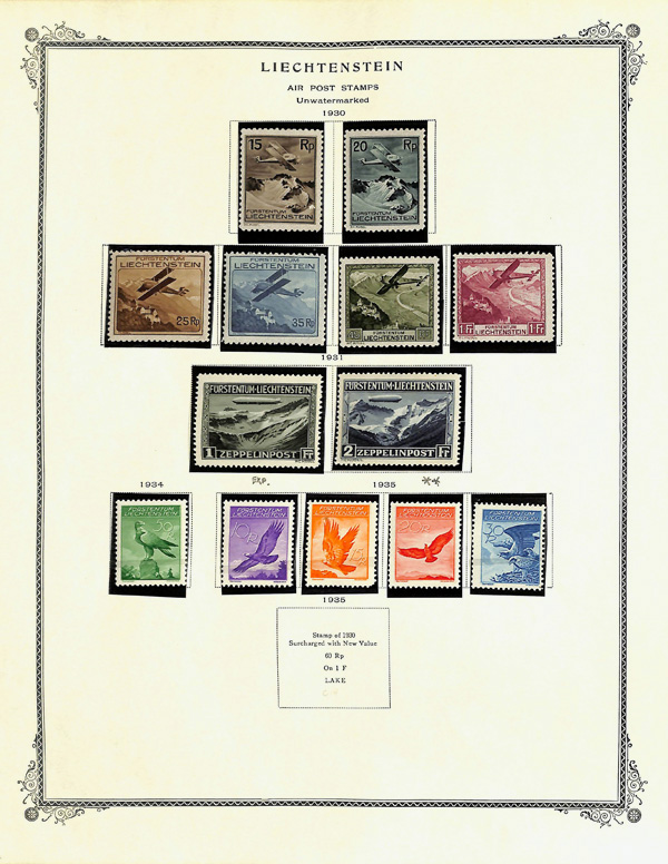 3707   imageSwitzerland & Liechtenstein, "Die Berge rufen" Idyllic All-Mint Collection, 1881-1949, Clean collection on homemade pages with each country in separate volumes and all stamps in mounts. Swiss highlights include #113-18, 200-03, 206, 209, 226, 242, 244-46, 293-305, B2-3, B4-6, B80, B105, B116, B119, B130-32, B143-44, B178, C1-2, C3-12, C13-15. Liechtenstein is even better with such premium sets & singles as 1-3, 54-69, 74-80, 82-89, 94-107, 116-29, 130-31, 218 (sheet of 4), 238, B1-3, B7-10, B11-13, C1-6, C7-8, C9-13, C14, C15-16, C24-33, etc, generally Fine to Very Fine, additional images online. Shipping charges apply - weight 5.6 lbs. (PDF for this Lot) (Image)