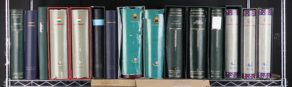 3714   imageEastern Europe Country Collections Selection, 15 Scott or Minkus albums with issues for Albania, Bulgaria, Hungary, Romania, Russia, and Yugoslavia, plenty of post-1960s NH and colorful topicals, premium scattered throughout highlighted by (mint unless otherwise noted) Albania to 1975 with 164-96, 280-89, 424-31 NH, B28-33, C1-14, Bulgaria to 1958/92 with colorful topicals, S/S, some imperfs, Hungary to 2005 issues with numerous better as 7-12 used, 906-10 imperf NH, 1000-03+C107-08 imperf NH, 1057-60+C123-27 imperf NH, B18-34 used (5f mint), 465, B198A-198D+CB1-CB1C NH, B202 sheet of four NH, C12-23, etc. plus a useful group of 1940s/90s mint sets (many NH) including some imperfs, Romania to 1995 with 283-357, 380-402, 417-98, B37-49, B66-134, nice array of 1940s/70s sets and S/S with many NH, Russia to 1991 with large percentage used/cto, some better pre-1950s issues, 763-66 NH, 767-71, 832-37 NH, 850-51, 859, C6-11, C53-57 used, loaded with mixed mint and cto 1960s/90s topicals, Yugoslavia to 1998 including the forerunners with related areas Croatia, Montenegro, Serbia, and Slovenia mostly post-independence (some earlier) also present, numerous better mixed mint and used through 1940s then useful 1950s/70s mint sets with some NH, generally F-VF, nice group to build upon. Shipping charges apply - weight 97 lbs. (Video for this lot) (Video2 for this lot) (Video3 for this lot) (Video4 for this lot) (Video5 for this lot) (Video6 for this lot) (Video7 for this lot) (Image)