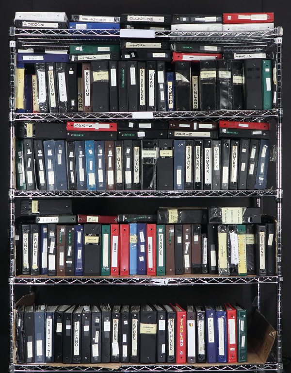 3686   imageMassive Western Europe Dealer's Stock: France, Germany, United Kingdom & More, 1850-2010, a truly massive group of 200 counter books; features many desirable countries such as the United Kingdom, France, Germany, the Netherlands, Italy, Nordic countries, Switzerland, Belgium, and others; many books rich with better material, with a strong concentration of France and Germany; all books are appropriately labeled and stamps are found nicely placed on counter pages with appropriate Scott numbers noted; largely single stamps, but some blocks and souvenir sheets; a very nice opportunity for any dealer looking for a diverse, desirable, and organized stock or for any collector looking for a wealth of material for their collection; we strongly invite in-person inspection for this massive lot; please see photos online.