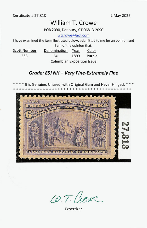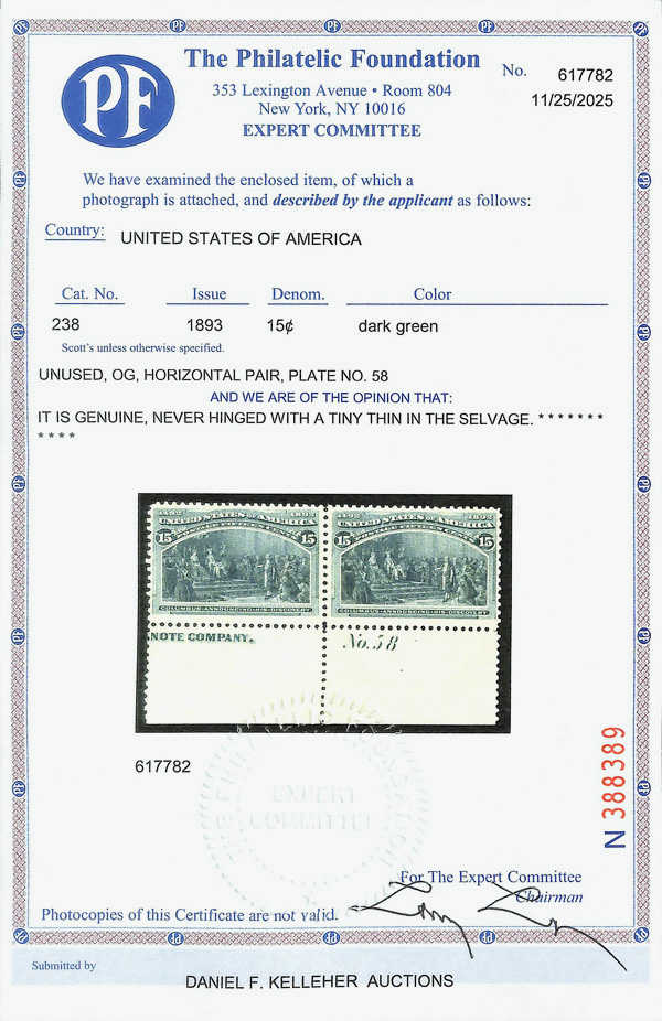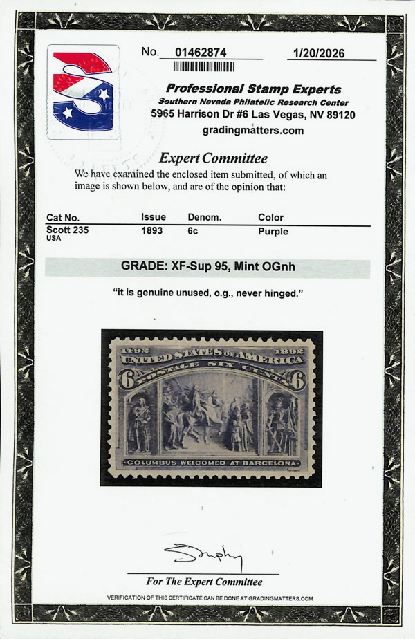StampAuctionNetwork® is a registered trademark of Droege Computing Services, Inc | StampAuctionCentral and StampAuctionNetwork® are Copyright © 1994-2026 Droege Computing Services, Inc. All Rights Reserved. | Mailing Address: 20 West Colony Place, Suite 120, Durham NC 27705 | If you want to talk to me about anything other than selling your stamps, call 919-403-9459 and ask for Tom Droege, or email support@stampauctionnetwork.com We can help you evaluate or sell your collection so... Click here for help selling your Collection. Once you follow the instructions we can talk. But first we have a process. Sign up for a paid or free membership | Lost your Links? Return to StampAuctionNetwork® | Instructional Videos - Master StampAuctionNetwork® | Sign up for our Newsletter | Terms and Conditions.