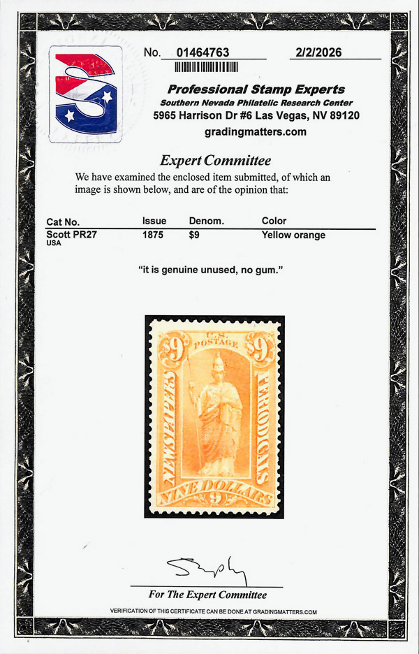 StampAuctionNetwork® is a registered trademark of Droege Computing Services, Inc | StampAuctionCentral and StampAuctionNetwork® are Copyright © 1994-2026 Droege Computing Services, Inc. All Rights Reserved. | Mailing Address: 20 West Colony Place, Suite 120, Durham NC 27705 | If you want to talk to me about anything other than selling your stamps, call 919-403-9459 and ask for Tom Droege, or email support@stampauctionnetwork.com We can help you evaluate or sell your collection so... Click here for help selling your Collection. Once you follow the instructions we can talk. But first we have a process. Sign up for a paid or free membership | Lost your Links? Return to StampAuctionNetwork® | Instructional Videos - Master StampAuctionNetwork® | Sign up for our Newsletter | Terms and Conditions.