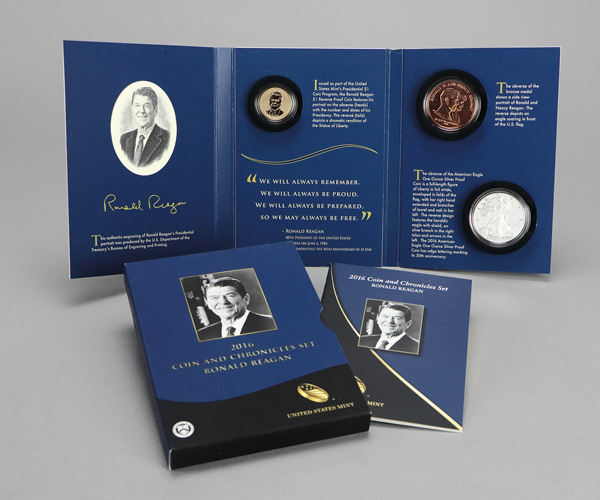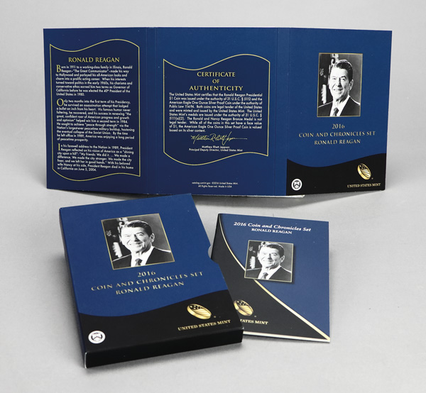 2016 United States Mint Coin and Chronicles Set: Ronald Reagan, in OGP. Shipping charges apply - weight 0.8 lbs. (Image) (Image2)