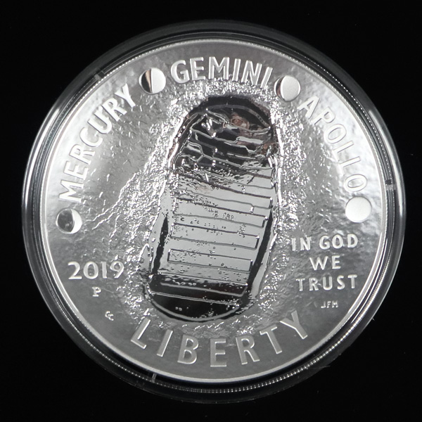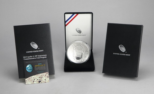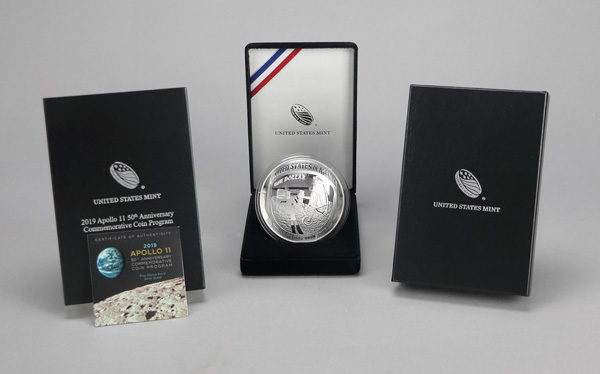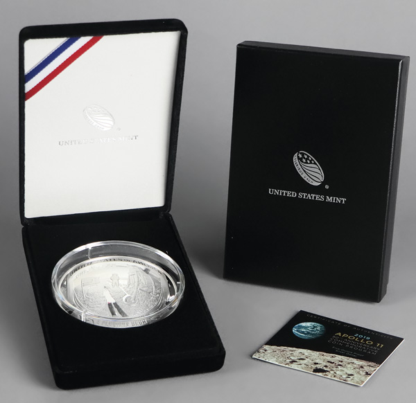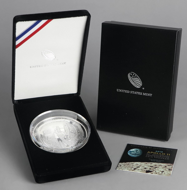 2019 Apollo 11 50th Anniversary Commemorative 5 Oz. Silver Coin, in OGP. Shipping charges apply - weight 1.4 lbs. (Image) (Image2)