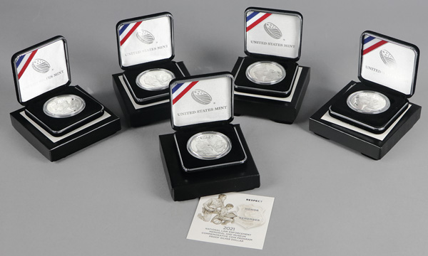 Group of (5) 2021 National Law Enforcement Memorial & Museum Commemorative Proof Silver Dollar, in OGP. Shipping charges