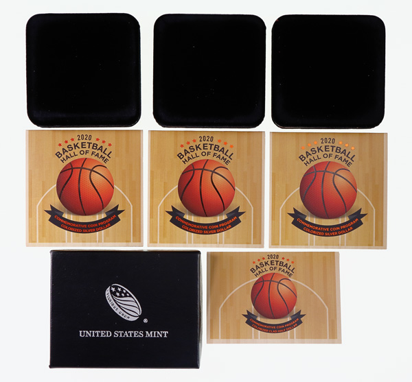 2020 Basketball Hall of Fame Silver Colorized $1 (3) & Half Dollar (1) OGP Group, in OGP (4) total coins. Shipping charges