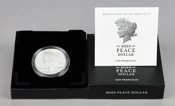 2023-S Silver Peace Dollar PR DCAM, in OGP. Shipping charges apply - weight 1 lbs. (Image)