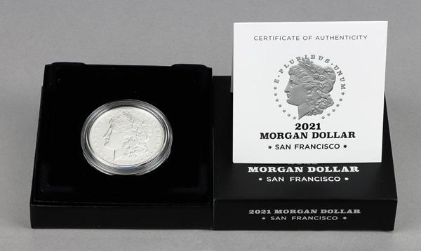 2021-S Silver Morgan Dollar, in OGP. Shipping charges apply - weight 1 lbs. (Image)