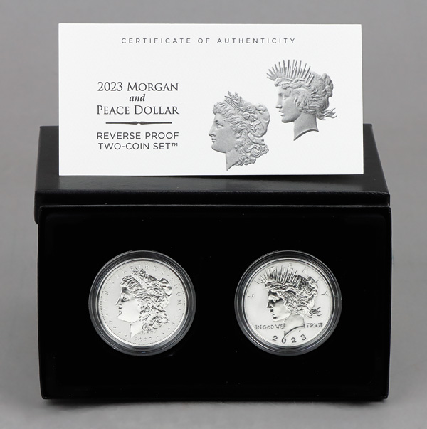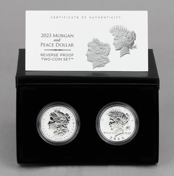 2023 Silver Morgan and Peace Dollar Reverse Proof Two-Coin Set, in OGP. Shipping charges apply - weight 1 lbs. (Image)