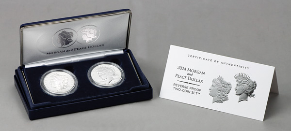2024 Silver Morgan and Peace Dollar Reverse Proof Two-Coin Set, in OGP. Shipping charges apply - weight 1 lbs. (Image)