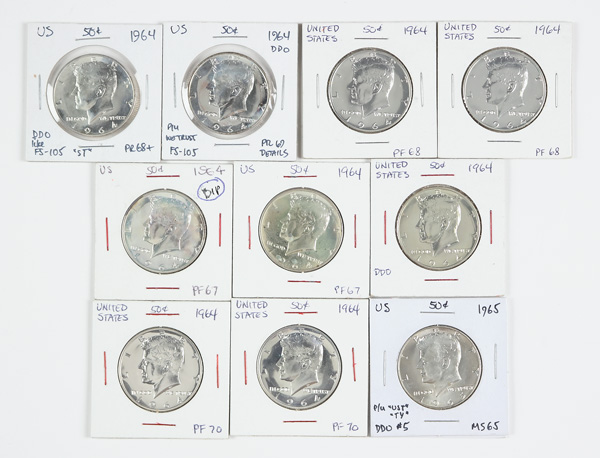 Group of (9) Silver Kennedy Half Dollar Proofs & (1) Half Dollar, 1964-1965, includes (9) 1964 proofs and (1) 1965 MS half