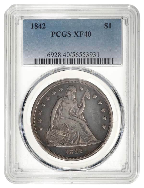1842 $1 Seated Liberty Dollar PCGS XF40 (Image) (Image2)