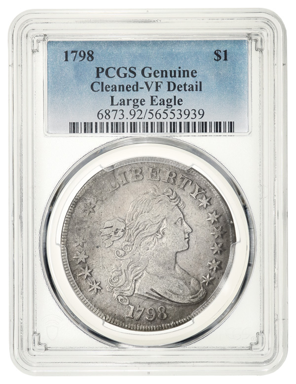 1798 $1 Draped Bust Dollar Large Eagle PCGS Cleaned - VF Detail (Image) (Image2)