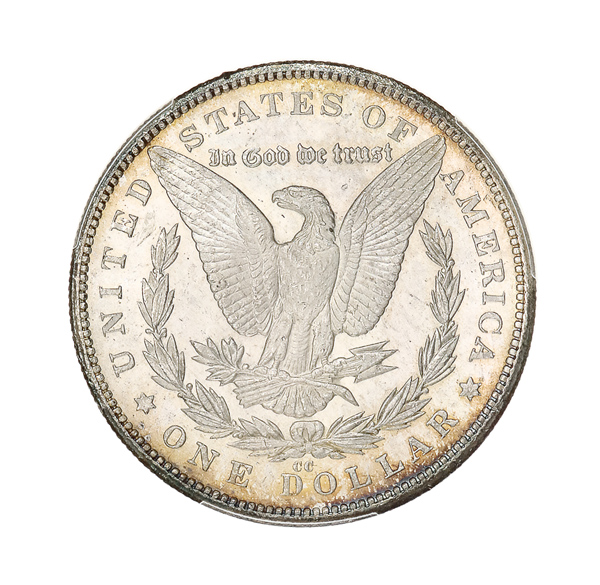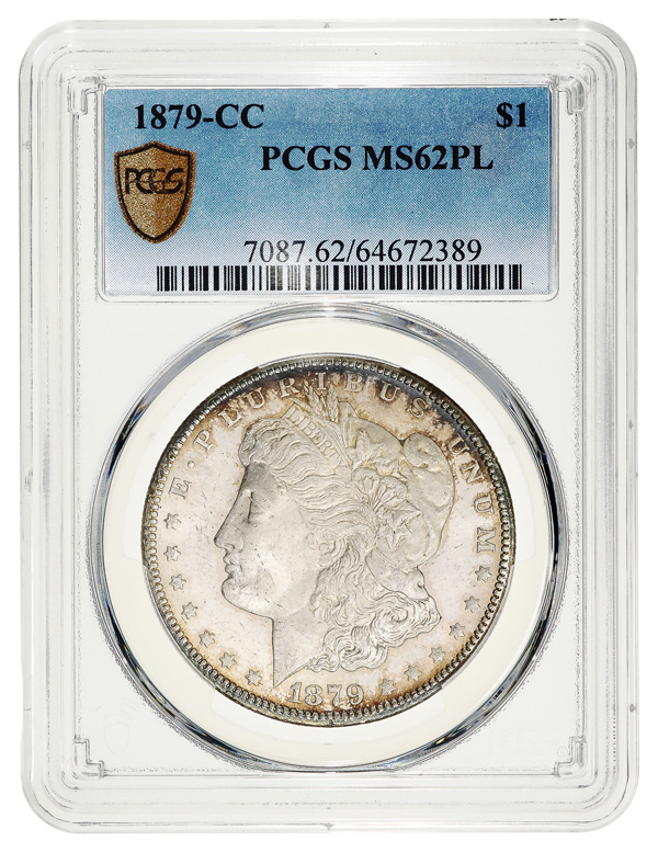 1879-CC $1 Morgan Silver Dollar PCGS MS62 PL, this attractive example has golden rim toning; solid strike with well-define
