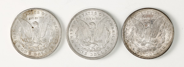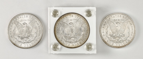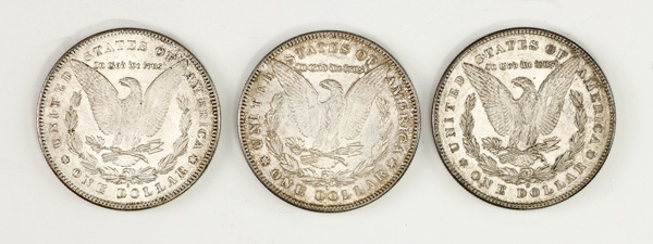 Group of (3) $1 Morgan Silver Dollars, 1881-1890, includes 1880, 1881-S, and 1890, Extremely Fine to Uncirculated. (Image) (Image2)